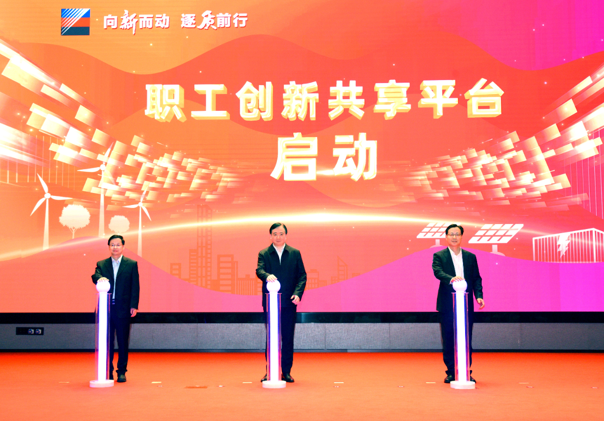 浙江省人大常委會副主任、省總工會主席劉忻,浙能集團黨委書記、董事長劉盛輝,浙能集團黨委副書記、總經(jīng)理倪震出席會議并共同啟動浙能職工創(chuàng)新共享平臺。
