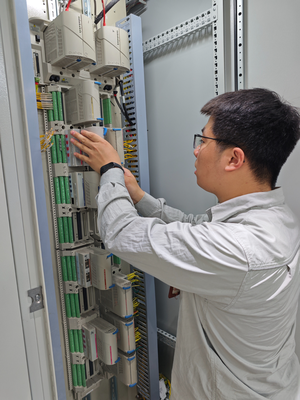烈日炎炎下,樂電儀控班組的胡遠(yuǎn)亮和鐘佳源正背負(fù)著測(cè)試艾默生卡件通道性能的重要任務(wù),前往溫電張海衛(wèi)勞模工匠工作室“取經(jīng)”,對(duì)于這對(duì)檢修兄弟來說,搭檔干活已經(jīng)成了他們的日常。