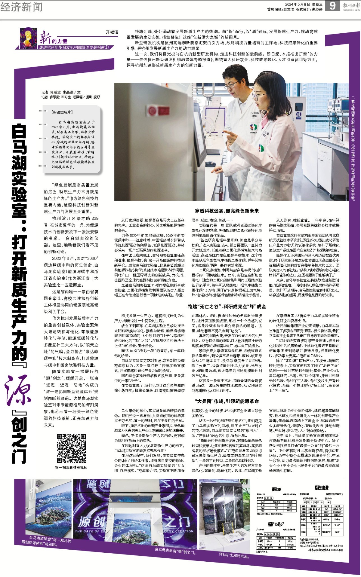 向“新”而行,以“質(zhì)”致遠(yuǎn)。5月8日,《杭州日報(bào)》推出《“新”的力量——走進(jìn)杭州新型研發(fā)機(jī)構(gòu)融媒體專題報(bào)道》,探尋杭州加速形成新質(zhì)生產(chǎn)力的創(chuàng)新力量,開欄首期整版報(bào)道《白馬湖實(shí)驗(yàn)室:打開新質(zhì)生產(chǎn)力的“源”創(chuàng)之門》。