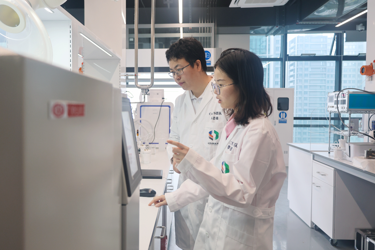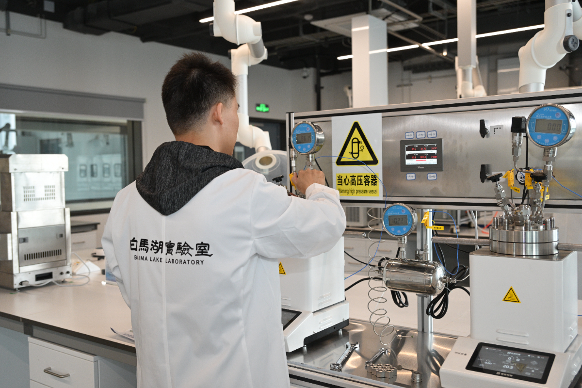 二氧化碳捕集及利用團(tuán)隊(duì)的科研人員正在進(jìn)行實(shí)驗(yàn)。 白馬湖實(shí)驗(yàn)室 提供