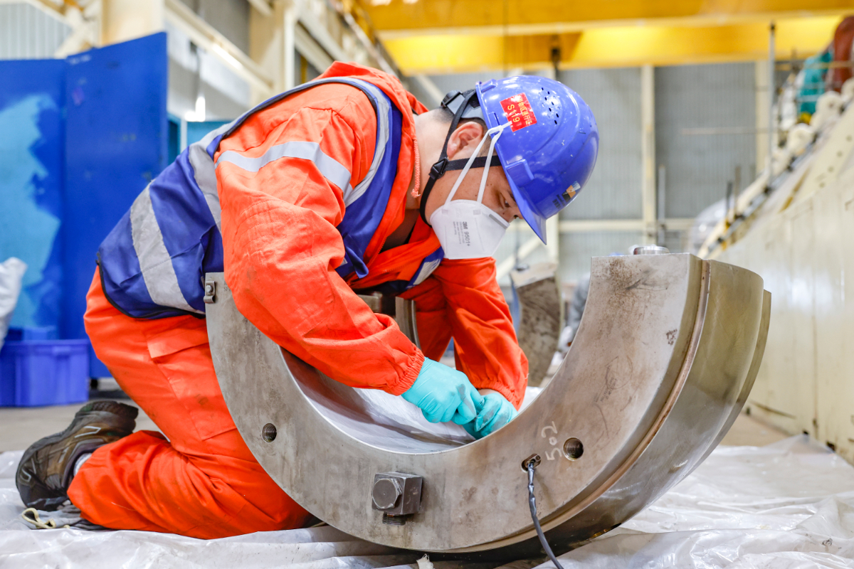 “這次C級檢修班組要完成5個徑向軸承的檢修,當天檢修軸瓦必須當天完成修刮、檢驗,配合儀控專業(yè)測溫元件更換、下軸瓦回裝并配合數(shù)據(jù)測量,既考驗作業(yè)人員的體力、耐力,更要求作業(yè)效率、工藝水平和協(xié)調(diào)組織能力。”嘉電檢修部熱機五班負責人如是說。