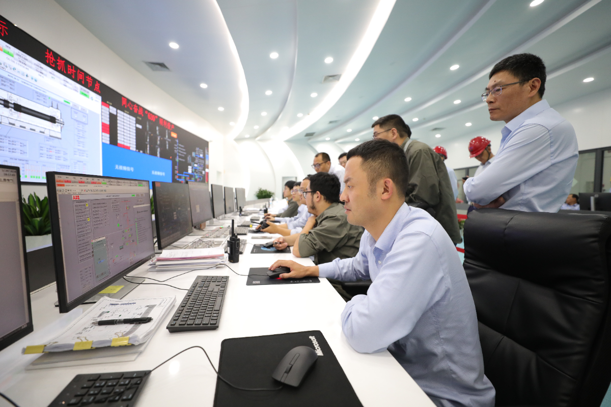 鎮(zhèn)聯(lián)電公司燃機(jī)異地遷建改造項(xiàng)目集控室中,各專業(yè)骨干人員晝夜奮戰(zhàn)、協(xié)同發(fā)力。 鄭凱 攝