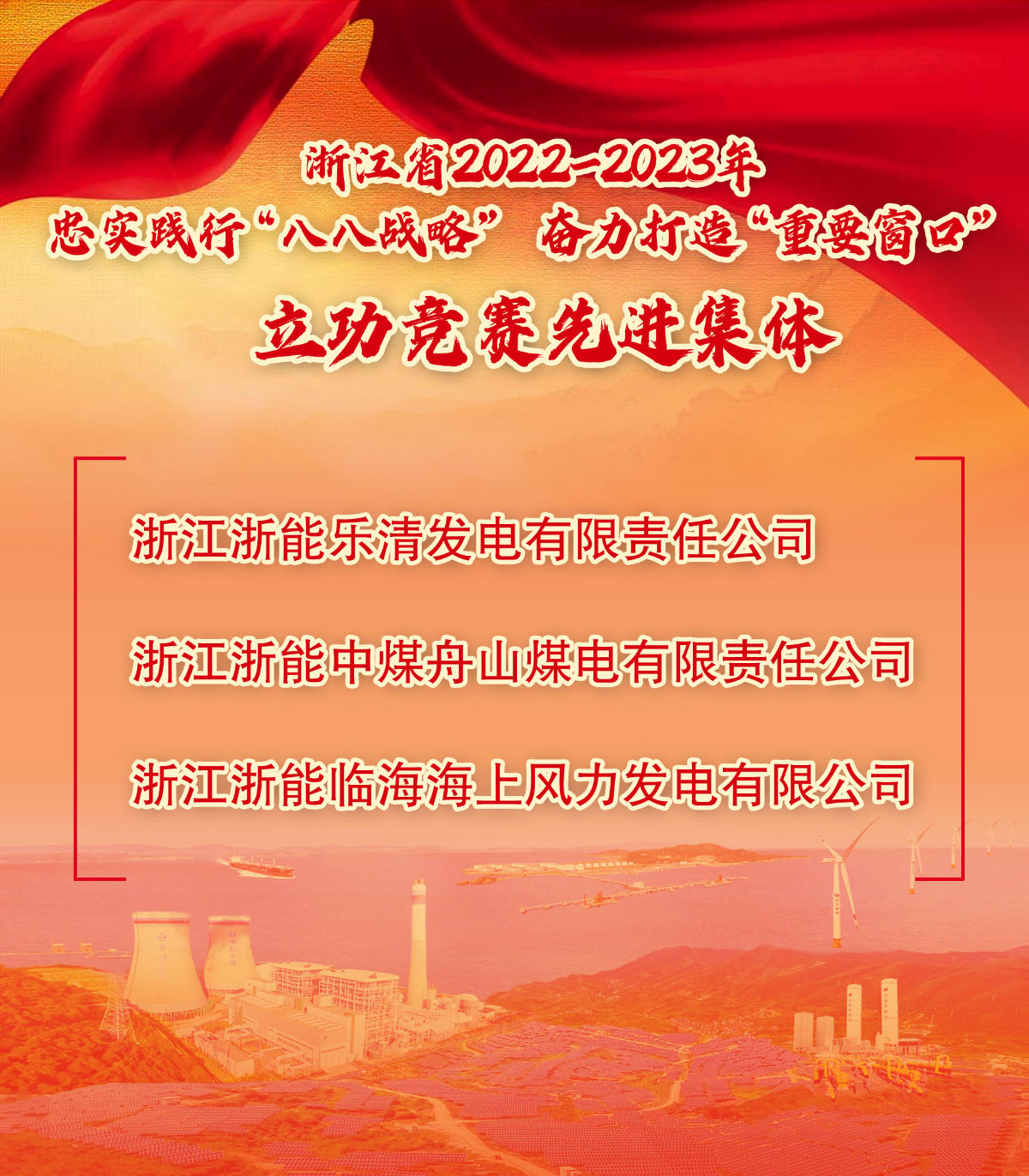 日前,浙江省人民政府公布2022-2023年忠實踐行“八八戰(zhàn)略” 奮力打造“重要窗口”立功競賽先進集體和先進個人名單,對100個先進集體和200名先進個人予以通報表彰。浙能所屬樂清發(fā)電公司、舟山煤電公司、臨海海上風電公司榮獲先進集體。