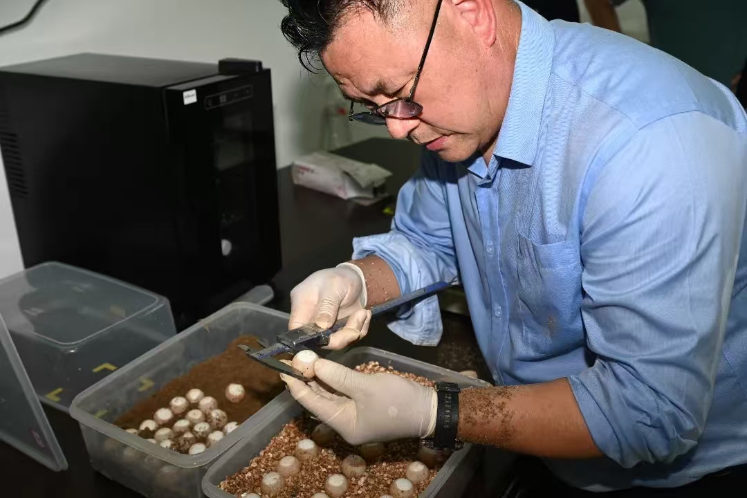 葉承義正在對(duì)黿卵進(jìn)行操作。 青田傳媒集團(tuán) 提供