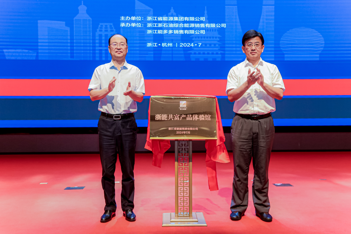 集團(tuán)黨委副書記王其達(dá)與集團(tuán)黨委委員、工會主席胡斌為“浙能集團(tuán)共富體驗館”揭牌。 陳統(tǒng) 提供
