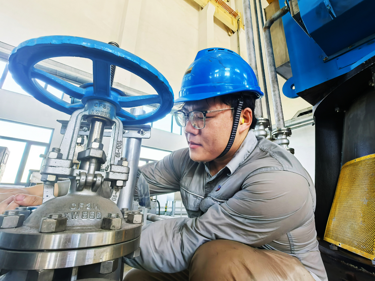 樂(lè)電汽機(jī)班張皓杰在循泵房開(kāi)展閥門(mén)檢修作業(yè)。 陳清瑜 攝