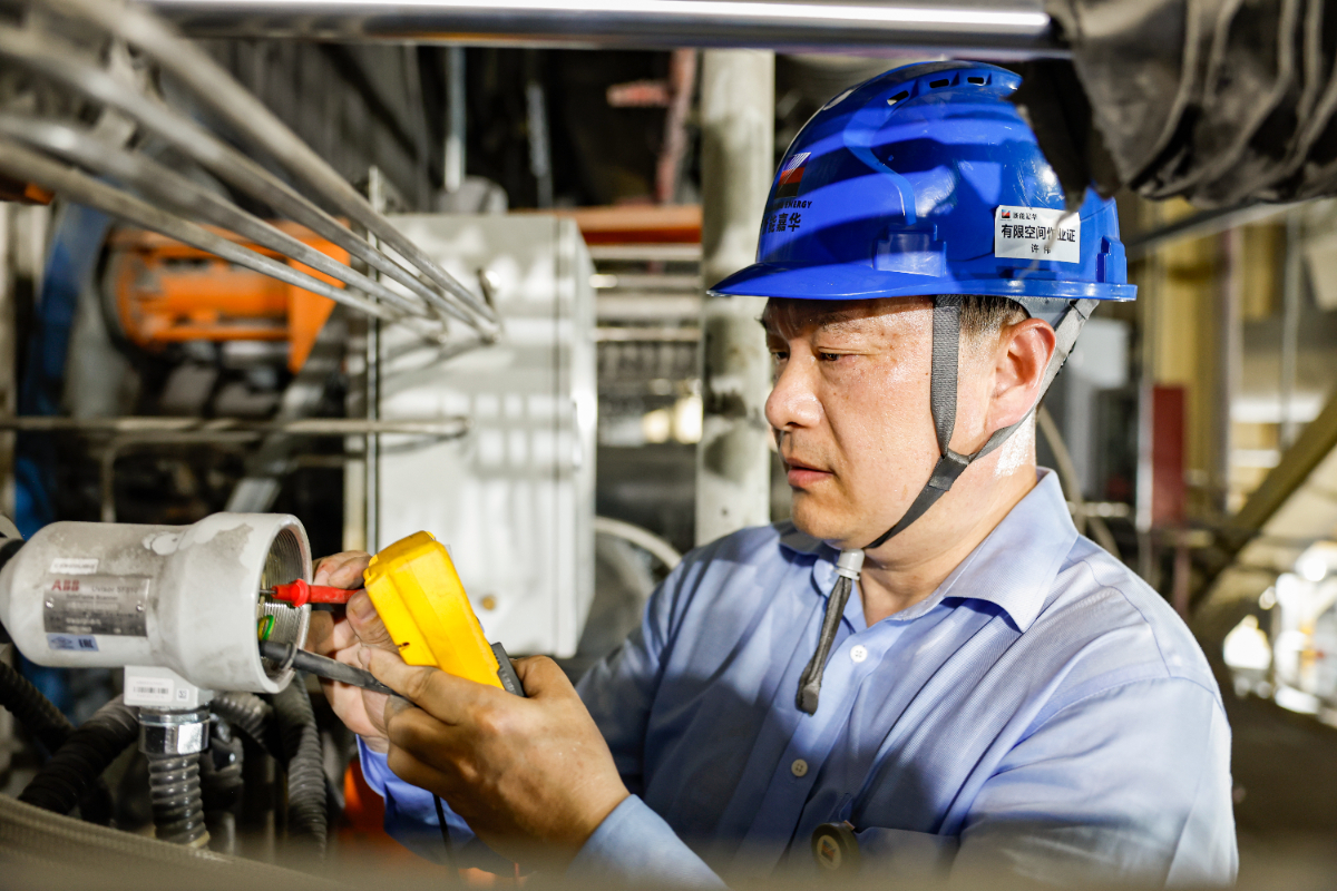 烈陽高照,浙能集團(tuán)旗下的伊犁新天煤化工儀控人員正在檢測儀表工作狀態(tài)。 方佳 攝