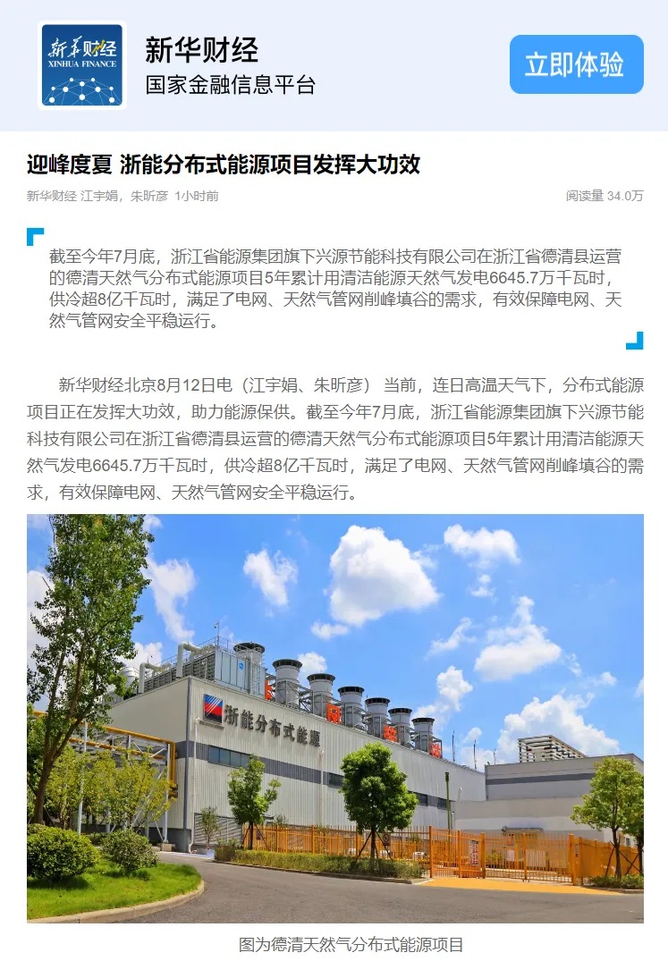 △8月12日,新華財經(jīng)報道《迎峰度夏 浙能分布式能源項目發(fā)揮大功效》。
