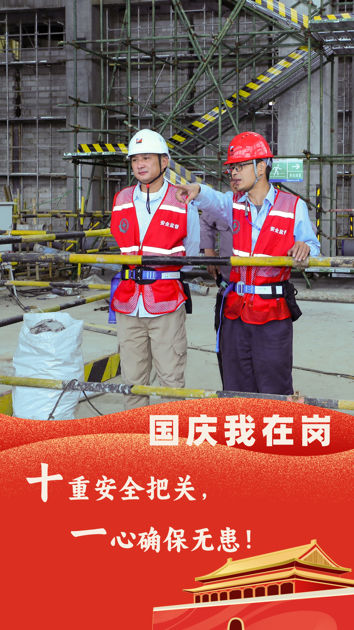 工程部黃啟東和孫偉鋼仔細察看進度督促施工。