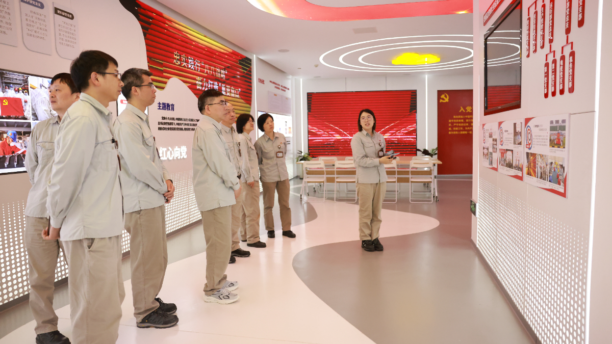 樂電公司黨員在企業展廳聆聽發展故事,感受澎湃動能。 陳清瑜 攝