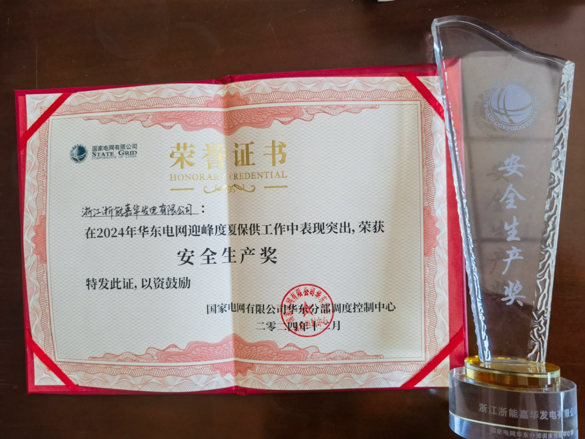 嘉華發(fā)電公司榮獲華東電網(wǎng)2024年迎峰度夏保供安全生產(chǎn)獎(jiǎng)
