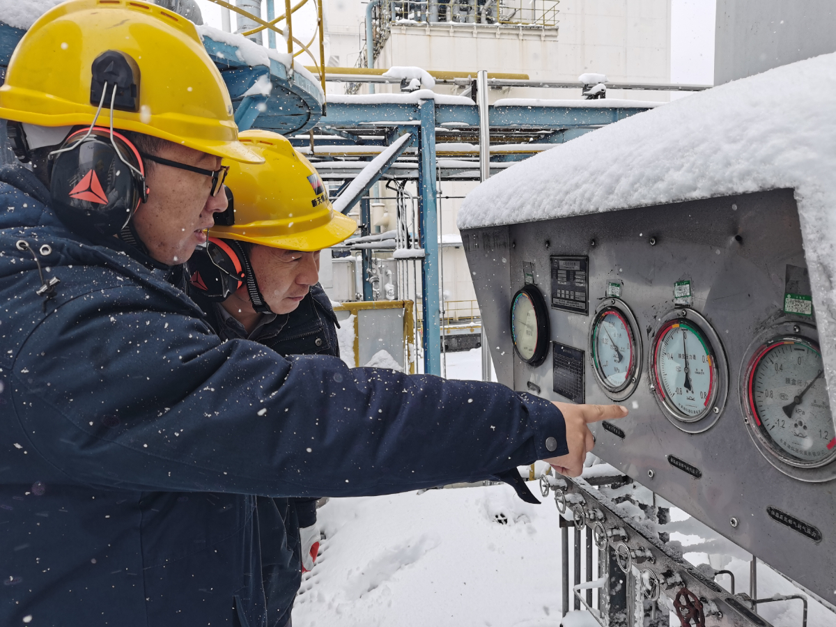 迎峰度冬期間,浙能新天煤化工現(xiàn)場(chǎng)操作人員正在認(rèn)真巡檢。 祁媛 攝