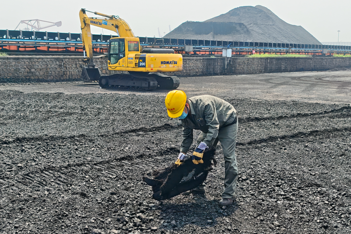 浙江越華長(zhǎng)電駐廠員工皮帶巡檢查看煤質(zhì)情況。 方祺森 攝