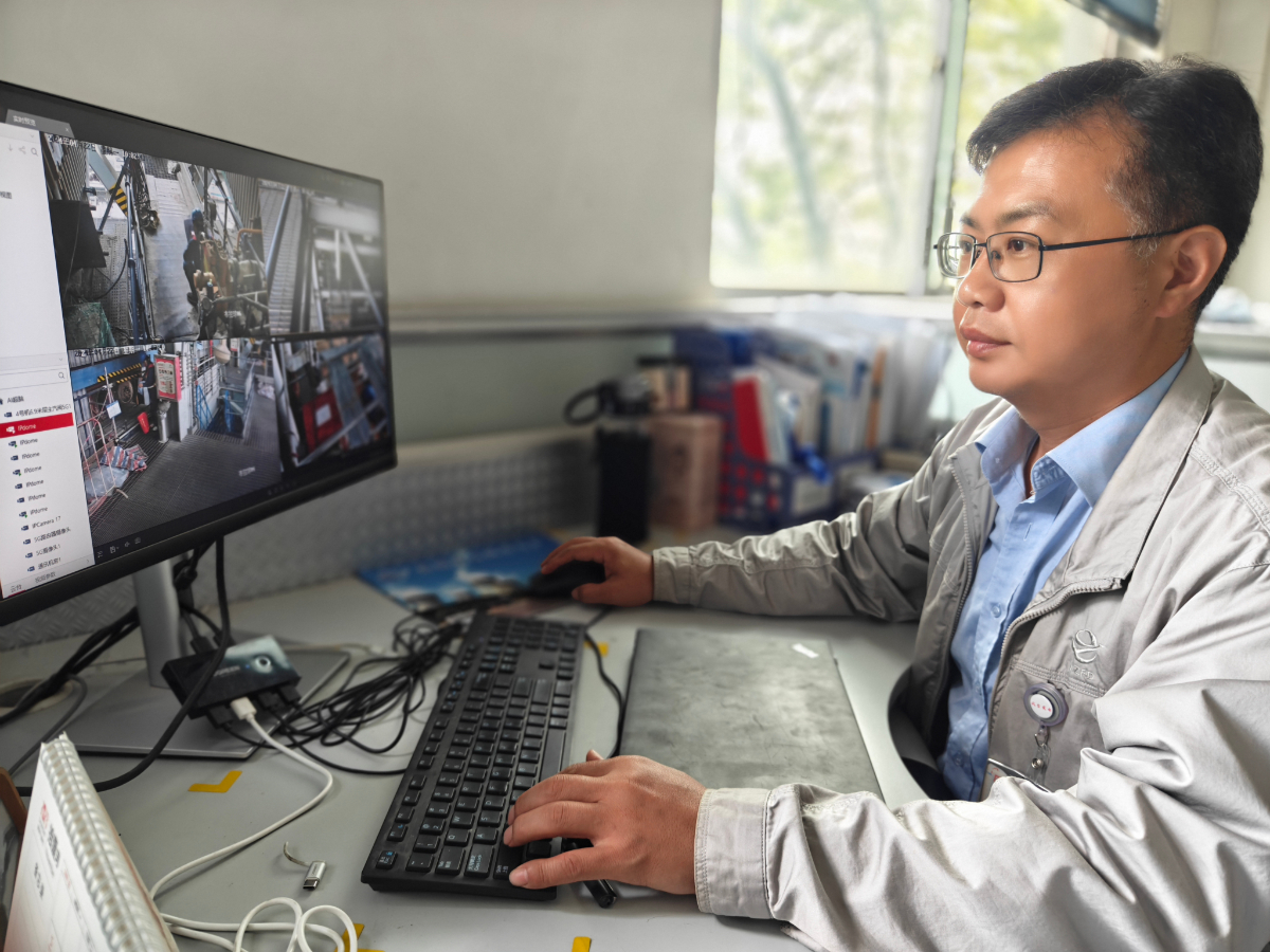 鳳電公司管理人員通過5G專網(wǎng)實時檢查現(xiàn)場作業(yè)情況。 王蒙 攝