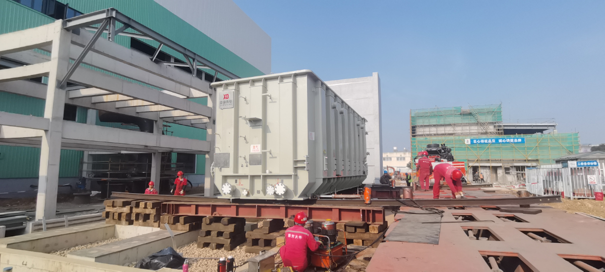 鎮(zhèn)聯(lián)電燃機(jī)異地遷建改造項(xiàng)目施工人員正進(jìn)行主變設(shè)備安裝。 王向陽 攝