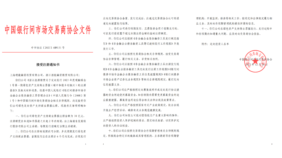 浙江省首單“碳中和債/鄉(xiāng)村振興”資產(chǎn)支持商業(yè)票據(jù)注冊成功!