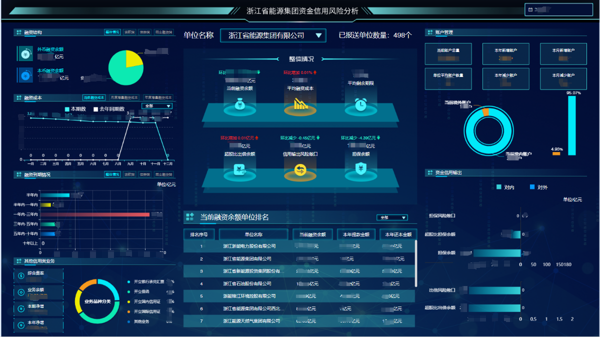 資金信用風險管理系統(tǒng)分兩部分,一是部署于省國資委財務風險監(jiān)測平臺下的資金信用風險子系統(tǒng),應用于省國資委及各省屬企業(yè),旨在加強國資國企資金信用風險監(jiān)測;二是部署于浙能集團的資金管理系統(tǒng),旨在提升資金管理精細化、集約化及智能化水平,提高資金運營效率,防范資金風險。到目前,國資委側(cè)系統(tǒng)已完成17家省屬企業(yè)集團推廣,企業(yè)側(cè)系統(tǒng)已完成浙能集團約500家成員單位推廣。歷經(jīng)多次版本更迭,系統(tǒng)功能不斷完善,已實現(xiàn)賬戶全生命周期閉環(huán)管理、融資業(yè)財一體化管理、債務風險預警、資金信用輸出風險監(jiān)測、大屏智能化分析等功能,切實提升省屬國資國企資金信用風險管理水平。