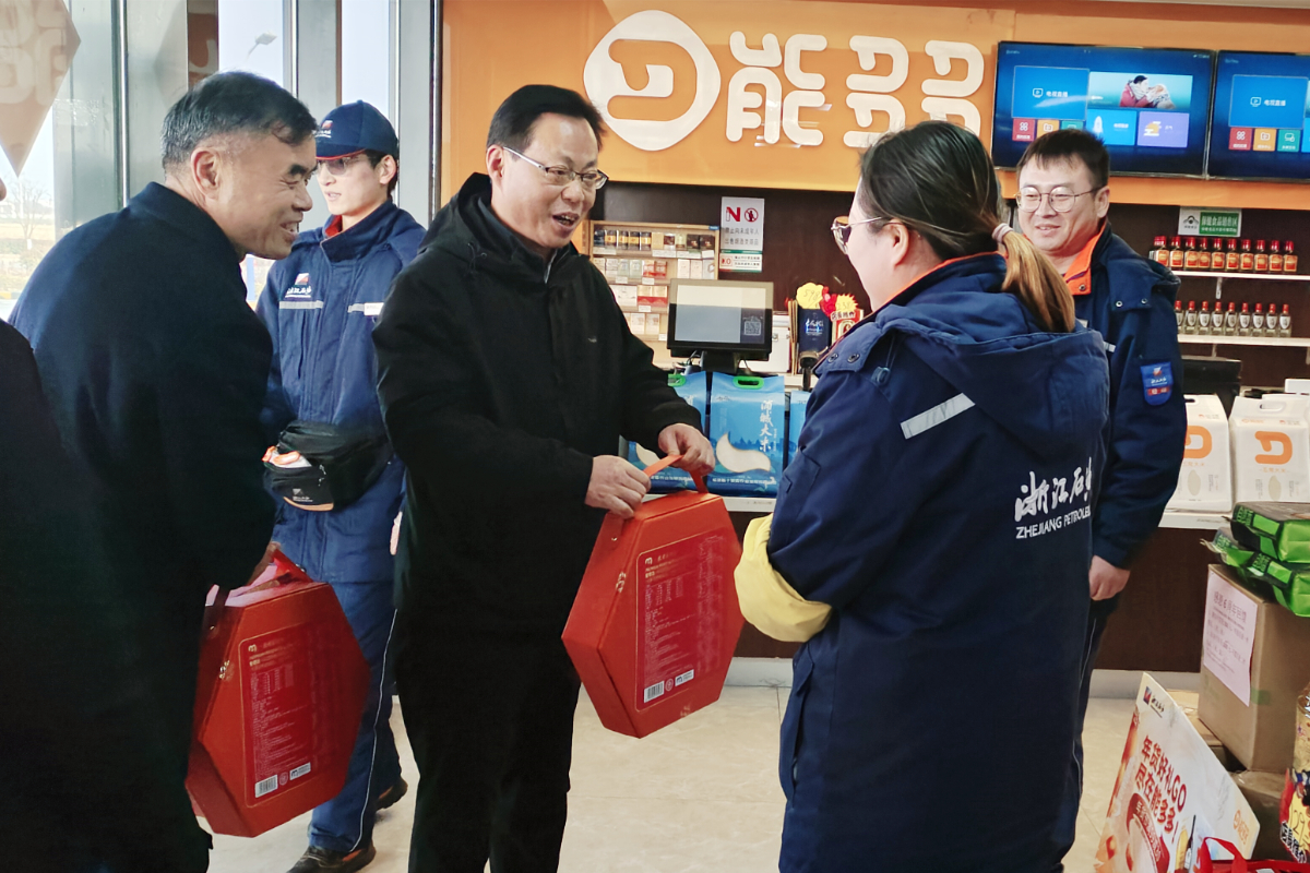 劉盛輝在浙石油平湖虹光櫻花站開展春節(jié)慰問檢查。 王建偉 攝