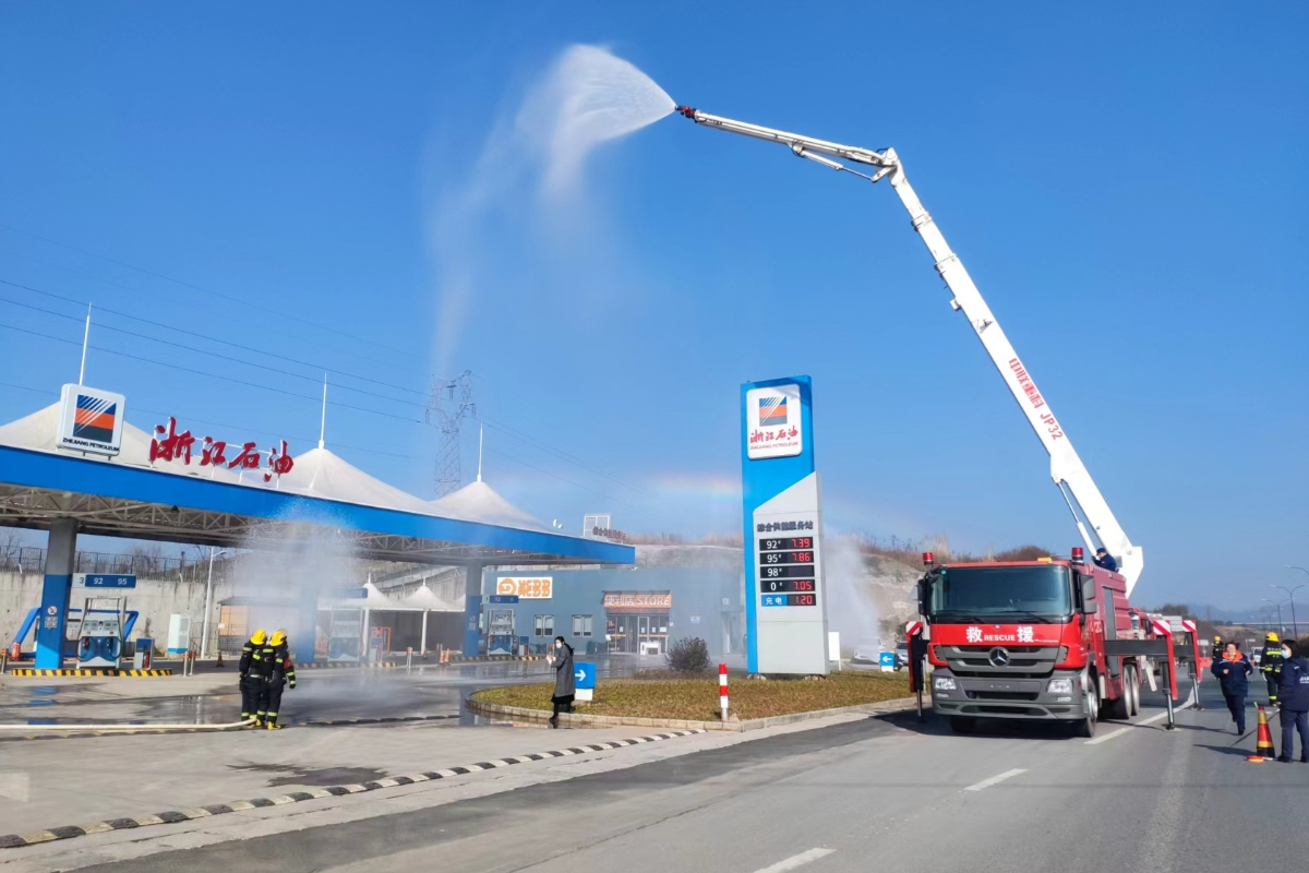 浙石油金華陽光大道綜合供能站與義烏蘇溪消防大隊聯(lián)合開展消防演練。 林初然 提供