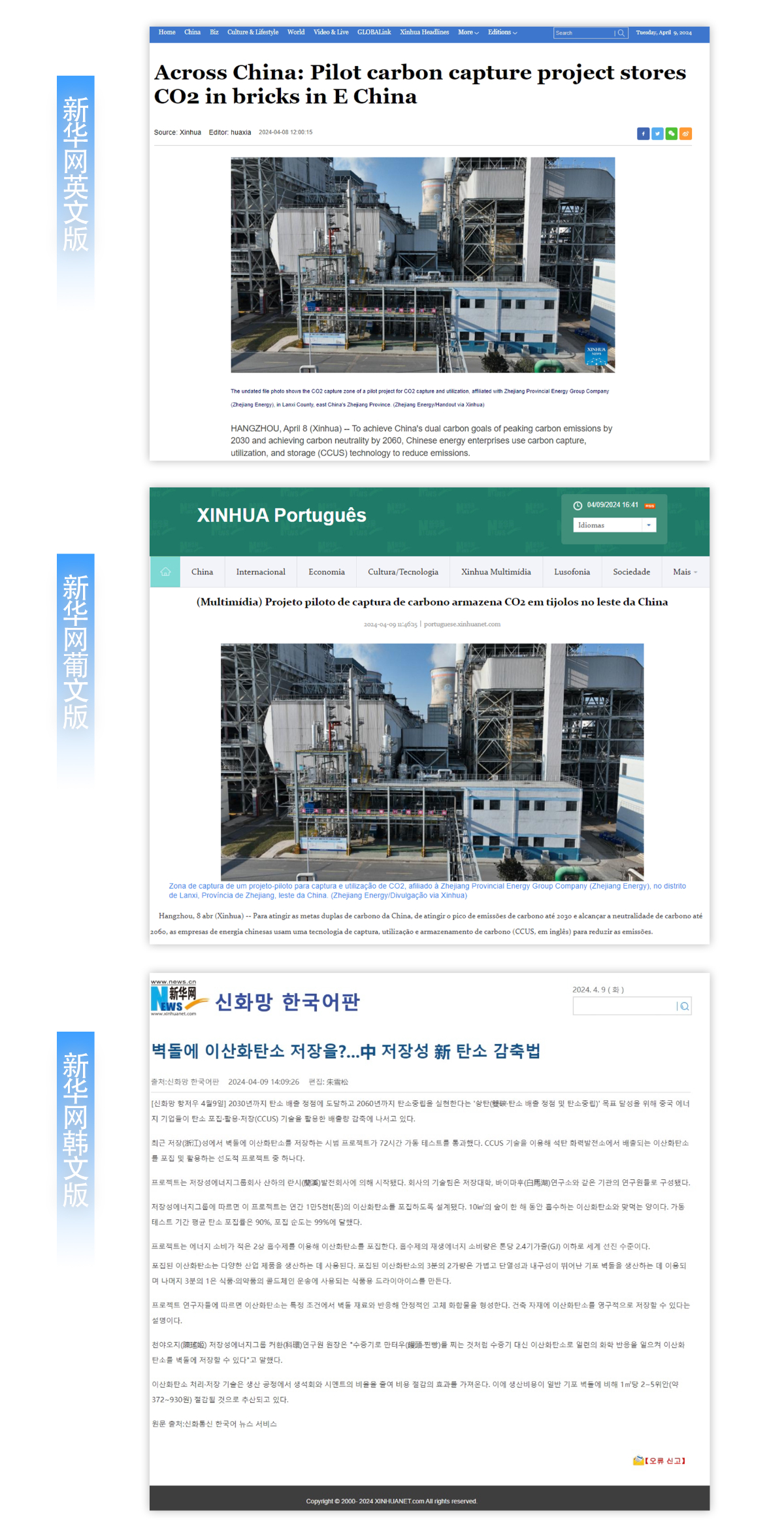 4月8日,新華社刊發(fā)英文、葡文、韓文外文通稿,報(bào)道浙能集團(tuán)“捕碳高手”。 新華社 圖