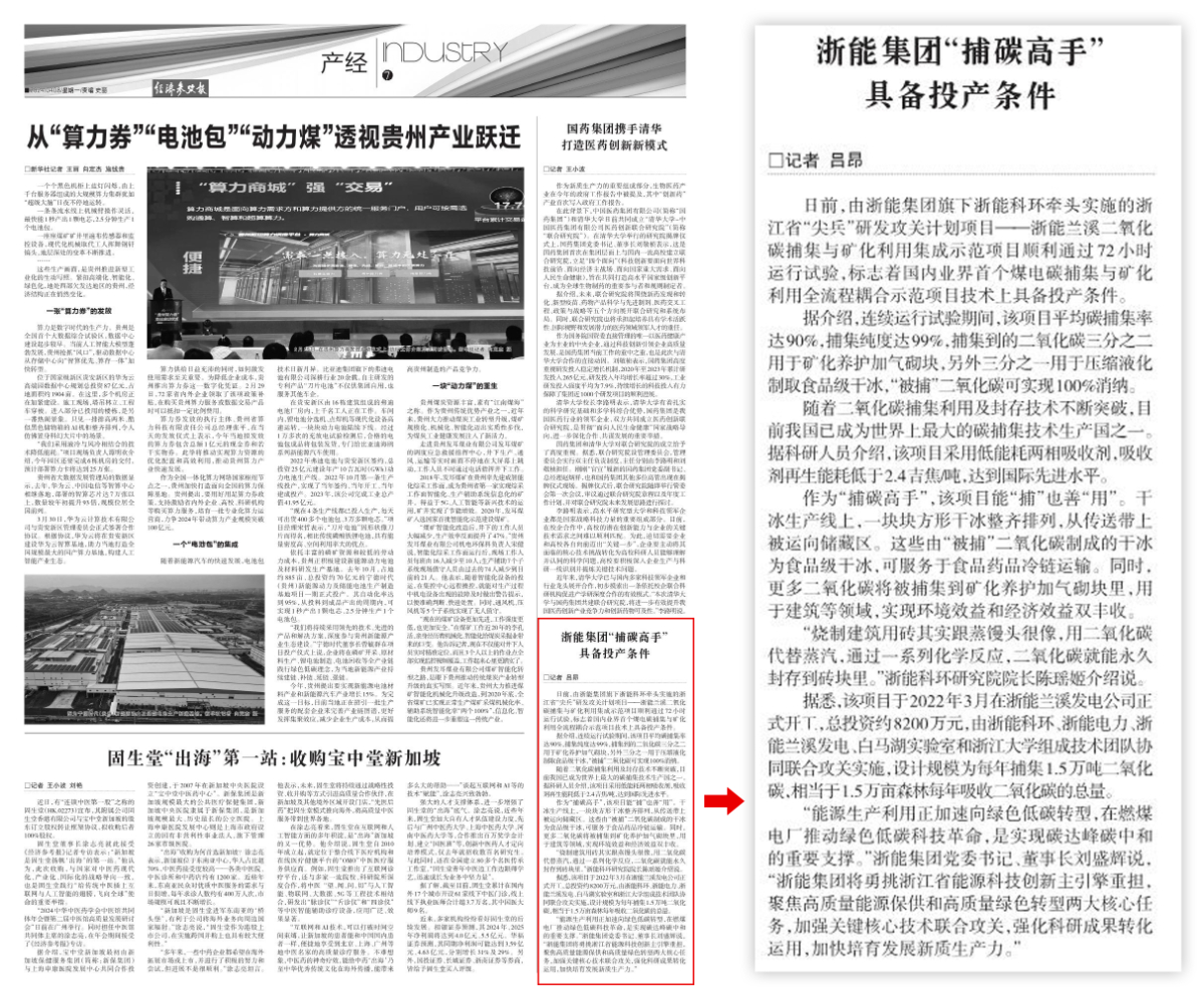 4月8日,新華社主管主辦經(jīng)濟(jì)參考報(bào)報(bào)道《浙能集團(tuán)“捕碳高手”具備投產(chǎn)條件》。 經(jīng)濟(jì)參考報(bào) 圖