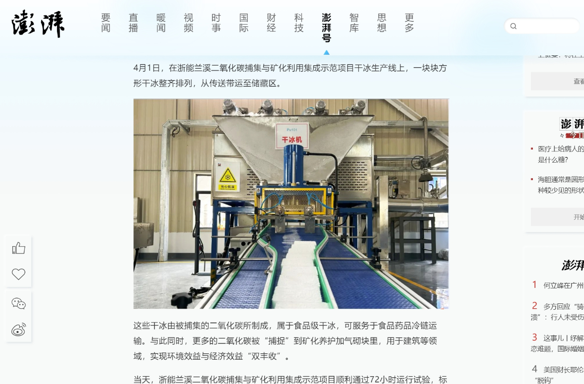 近日,浙能蘭溪二氧化碳捕集與礦化利用集成示范項(xiàng)目順利通過72小時運(yùn)行試驗(yàn),標(biāo)志著全國首個煤電碳捕集與礦化利用全流程耦合示范項(xiàng)目在技術(shù)上具備投產(chǎn)條件,項(xiàng)目新聞獲新華社、人民網(wǎng)、浙江日報(bào)、中國能源報(bào)、潮新聞、浙江國資公眾號、騰訊網(wǎng)、搜狐網(wǎng)、今日頭條、浙江在線等平臺聚焦。