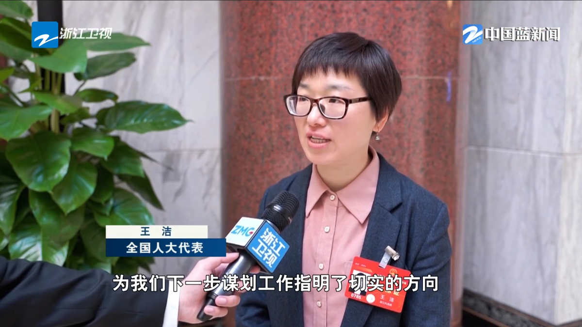 浙江衛(wèi)視《浙江新聞聯(lián)播》報(bào)道《直通全國(guó)兩會(huì)·履職新聲音 王潔:讓科研與生產(chǎn)力雙向奔赴》。 浙江衛(wèi)視 圖