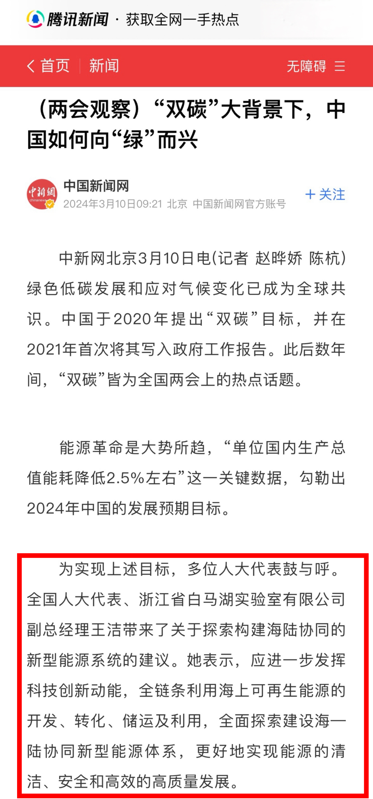 騰訊網(wǎng)報(bào)道《(兩會(huì)觀(guān)察)“雙碳”大背景下,中國(guó)如何向“綠”而興》 騰訊網(wǎng) 圖